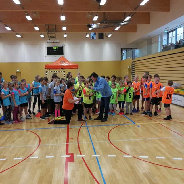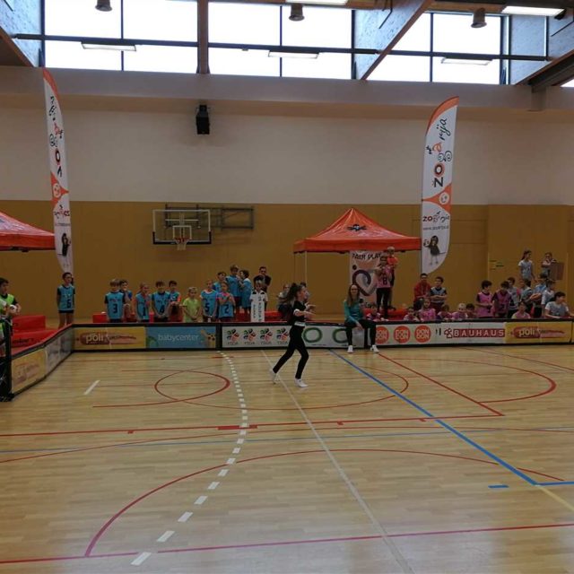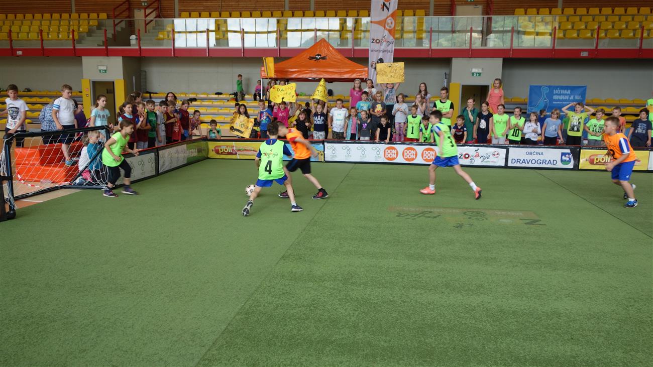 V petek, 25.5.2018 pa je Žogarija gostovala v Dravogradu. Vreme nas je pregnalo v športno dvorano Špic, vendar to ni vplivalo na dobro razpoloženje tekmovalcev in navijačev. Pomerile so se OŠ Šentjanž pri Dravogradu, OŠ Neznanih talcev Dravograd, 3. OŠ Slovenj Gradec in Podružnične šole Črneče in Libeliče.