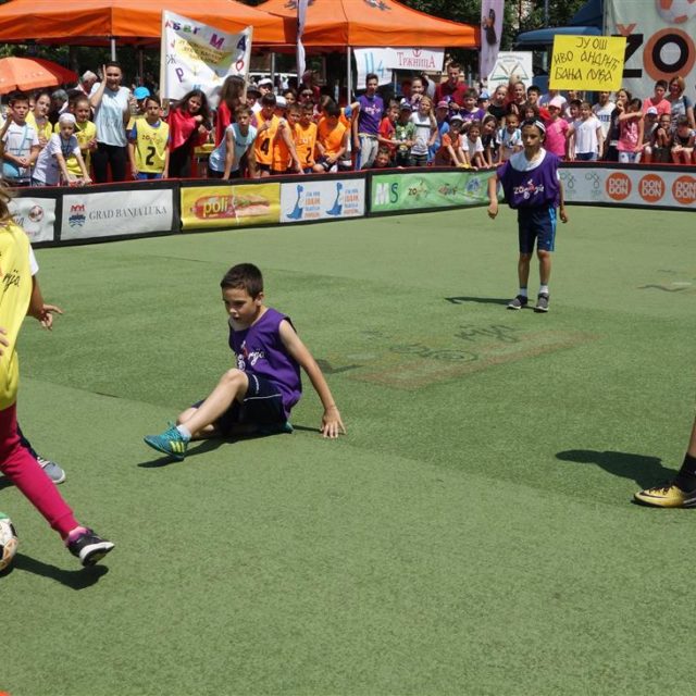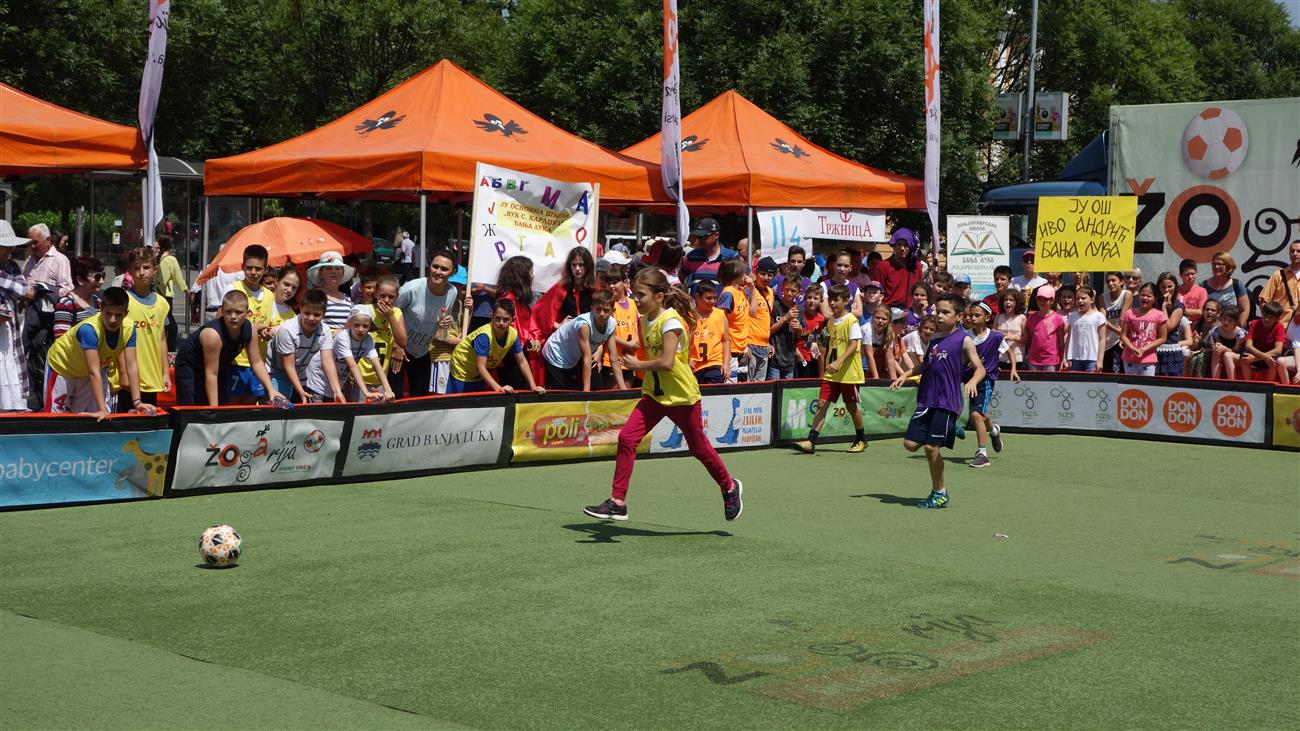 Zadnji dan maja se je na Trgu krajine, v centru Banja Luke, zbralo 8 osnovnih šol: OŠ Branislav Nušić, OŠ Branko Radičević, OŠ Ivo Andrić, OŠ Jovan Cvijić, OŠ Miloš Crnjanski, OŠ Vuk Stefanović, OŠ Zmaj Jova Jovanović in OŠ Branko Čopić. V vročem četrtkovem dopoldnevu so se pred polnimi tribunami tekmovalci najprej pomerili v kvalifikacijah nogometa 3 na 3 ter spretnostnih iger. Med tem so se na prizorišču pridružili tudi otroci vrtca Banja Luka, ki so si z zanimanjem ogledali dogajanje na igrišču, predvsem pa se veselili svojega obiska Mini Žogarije, kjer so vstopili v pravljični svet Mojce Pokraculje, sestavljali umetnine iz kock, igrali Mini nogomet, se preizkusili v spretnostnih poligonih in še bi lahko naštevali.
