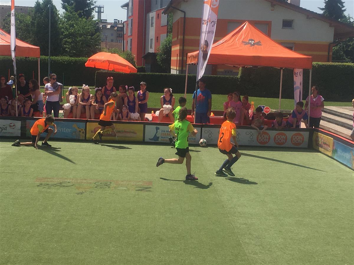 Tudi vreme nam je ta dan prišlo nasproti in kljub slabi napovedi, je sonce poskrbelo, da nam je bilo proti koncu prireditve že pošteno vroče. V finalnem delu so poleg otrok svoje spretnosti pokazali tudi učitelji, ki so se v igri Tudi Vi, profesor pomerili v nogometno-rokometni različici zbijanja kegljev. Prireditev sta si ogledala tudi člana NK Mura, Alen Kozar in Žiga Kous, ki sta se z mladimi nogometaši najprej pomerila v poigravanju žoge z nogo. Kasneje pa sta podelila tudi pokale, ki so si jih tekmovalci razdelili takole: