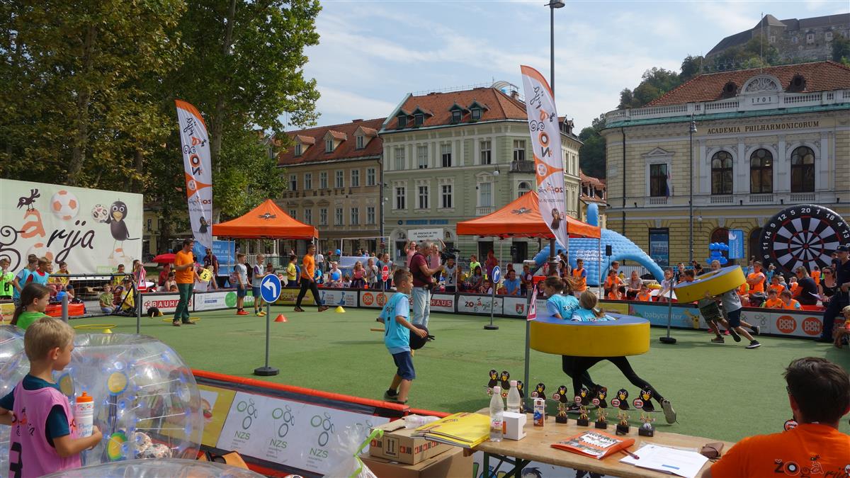 Še zadnjič letos, pred začetkom poletnih počitnic, so se minulo soboto mladi športniki zbrali na travnatem igrišču Žogarije. Tokrat je potekala v Domžalah, vzporedno s tradicionalnim Pohodom ob reki, ki združuje – in združila sta se tudi ta dva športna dogodka. Ker je dogodek potekal na soboto, je bilo dogajanje prilagojeno tudi naključnim obiskovalcem in teh ni bilo malo.